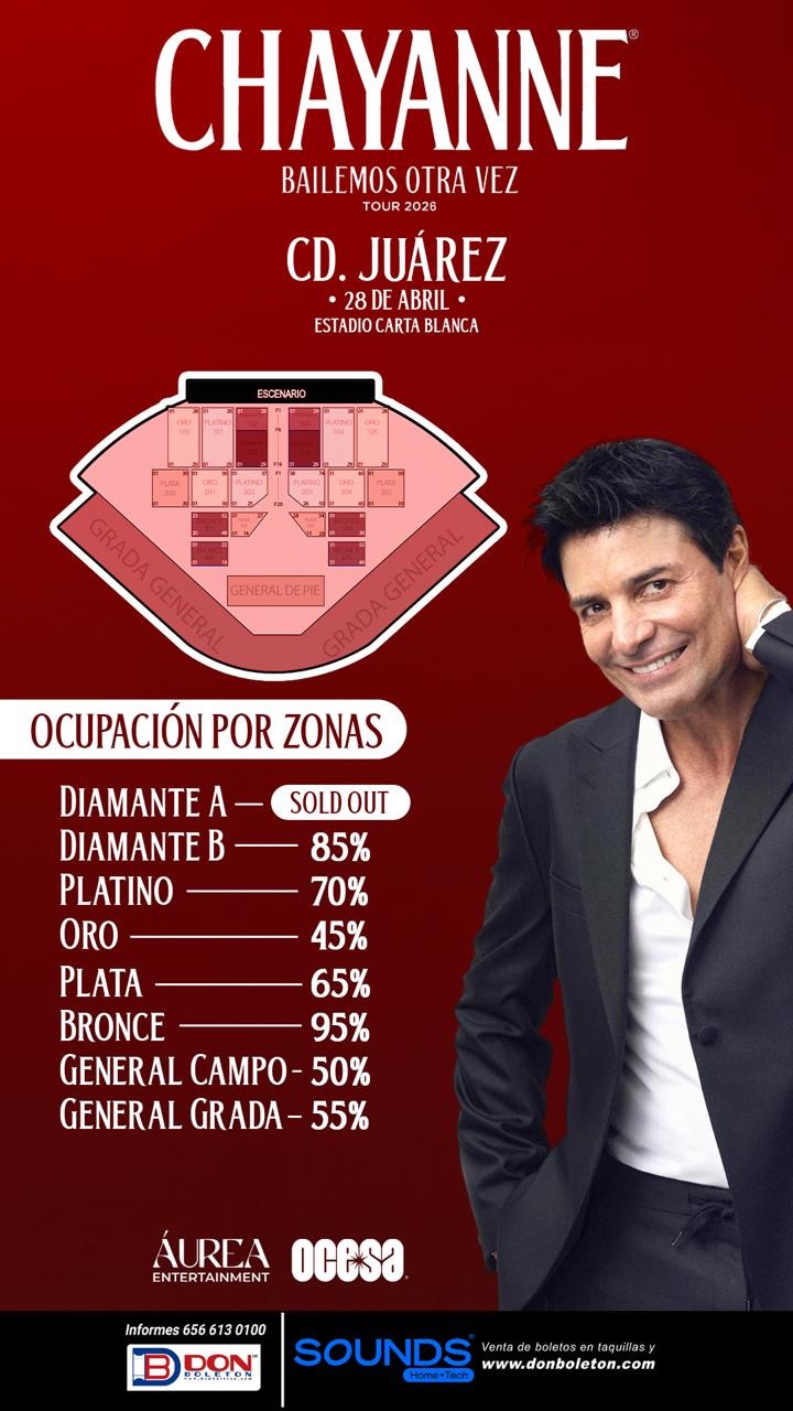 Ciudad Juárez, Chih.— El cantante puertorriqueño Chayanne volverá a presentarse en la frontera con su gira “Bailemos otra vez Tour 2026”, espectáculo programado para el próximo 28 de abril en el Estadio Carta Blanca, donde ya se reporta una importante ocupación en distintas zonas del recinto.