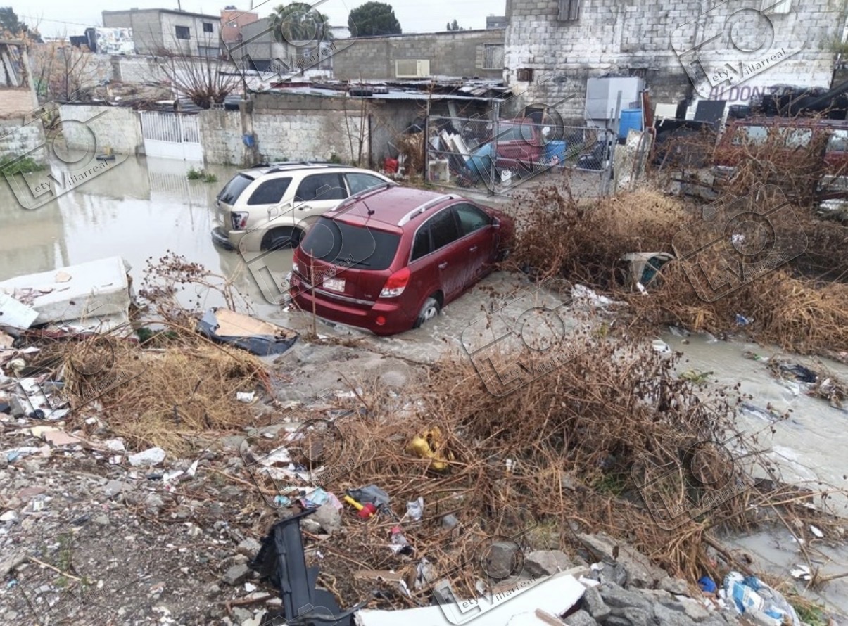 Ciudad Juárez, Chih.— Vecinos de la colonia Andrés Figueroa reportaron severas inundaciones en el cruce de las calles Boricua y Privada Puerto Rico, donde al menos dos vehículos quedaron varados debido a la acumulación de agua.