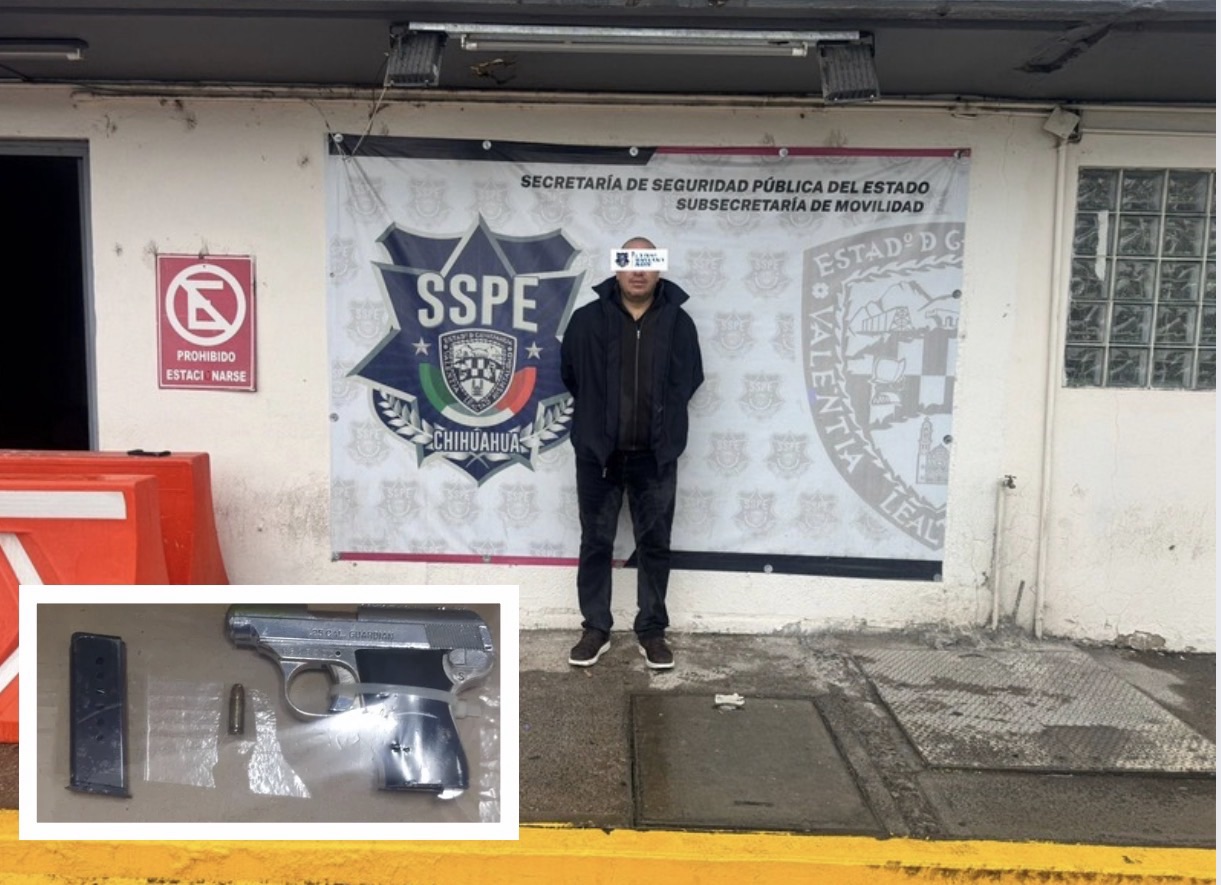Durante la intervención, los agentes se percataron de que el hombre portaba un arma de fuego calibre .25, por lo que procedieron a su aseguramiento conforme a los lineamientos legales y de seguridad.