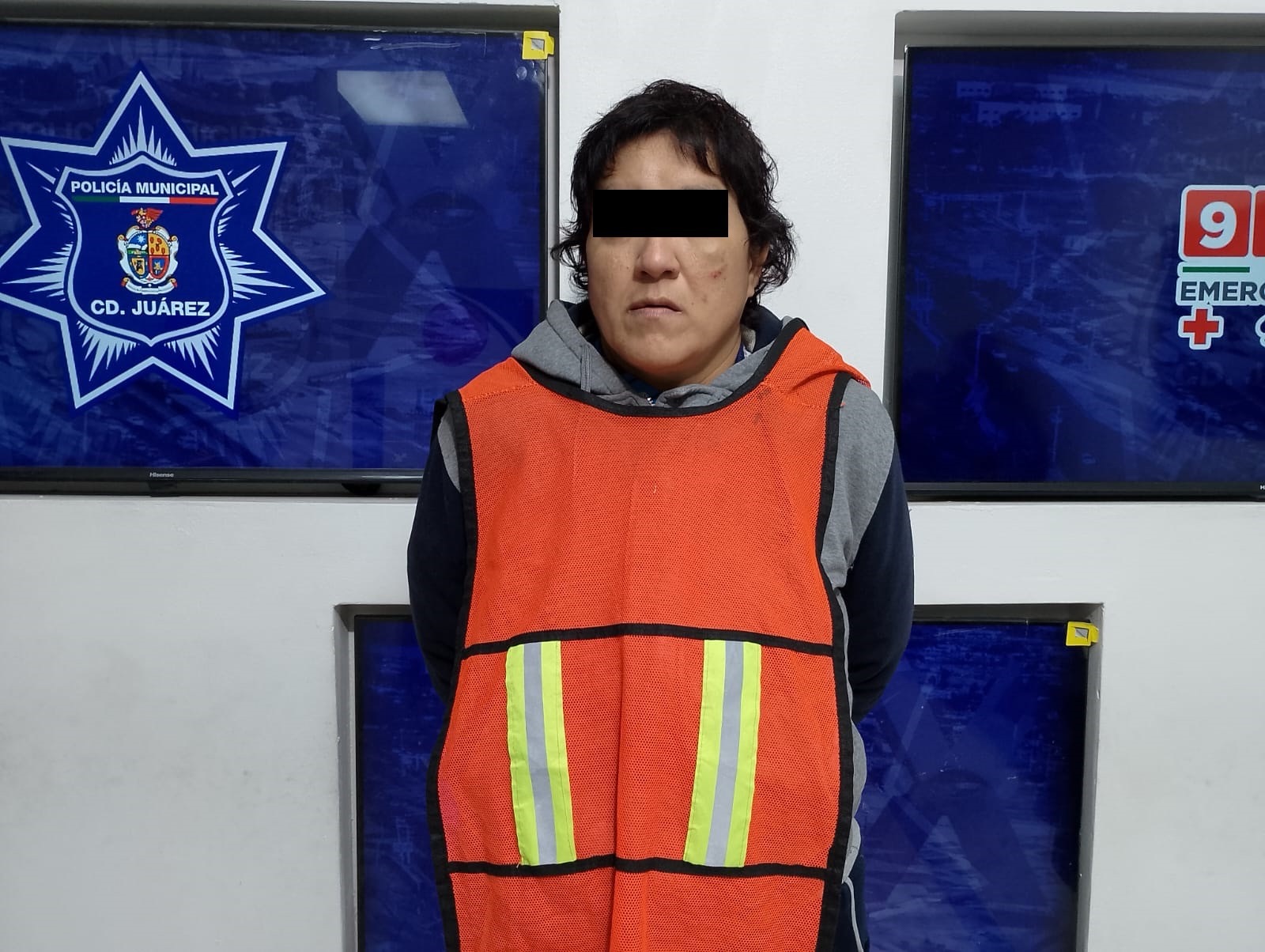 Ciudad Juárez, Chih., 30 de diciembre de 2025.— Elementos de la Secretaría de Seguridad Pública Municipal detuvieron a una mujer identificada como Jessica Yunuen R. O., por su presunta responsabilidad en el delito de desobediencia y resistencia de particulares, además de que será investigada por un posible caso de lesiones.