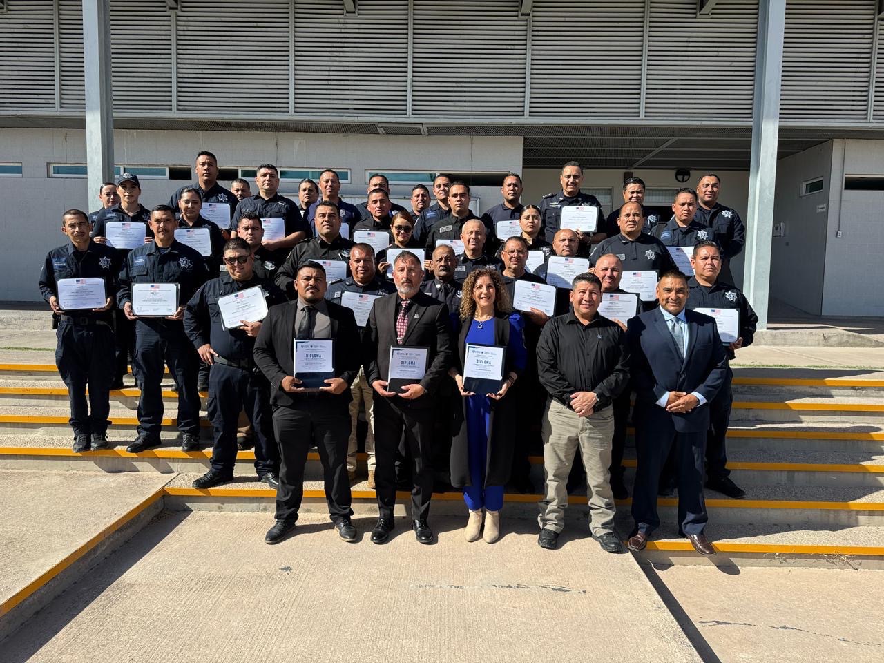 Ciudad Juárez.– Un primer grupo de 43 elementos de la Secretaría de Seguridad Pública del Estado (SSPE) concluyó el Curso de Habilidades Policiales impartido por la Oficina de Asuntos Antinarcóticos y Aplicación de la Ley (INL), como parte de los programas de colaboración binacional orientados al fortalecimiento de las corporaciones de seguridad.